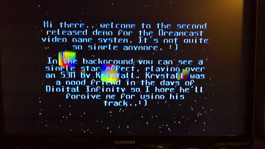 If all goes to plan, this should build, deploy, and execute the 2ndmix demo on your Dreamcast!