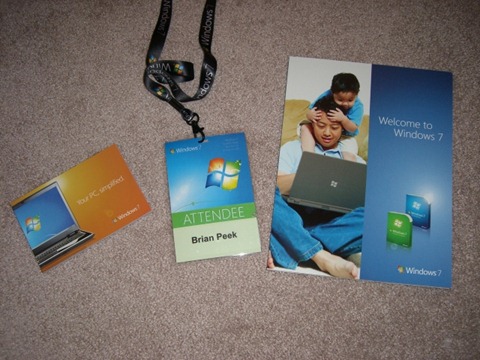 And on the way out, everyone was given a goodie bag of Windows 7 items, including a copy of Windows 7 Ultimate Signature Edition, “signed” (i.e. embossed) by Steve Ballmer.